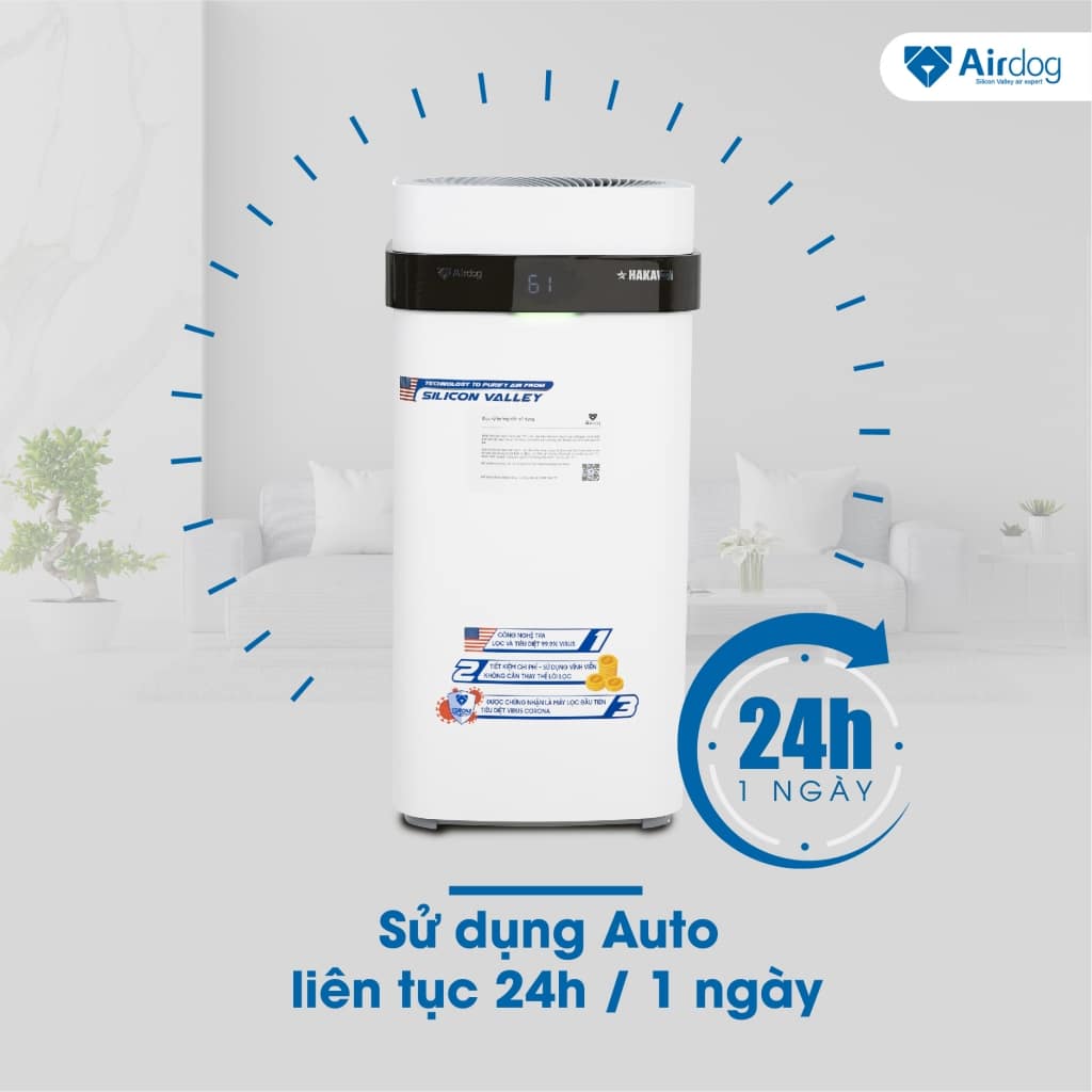 Máy lọc không khí Airdog được thiết kế để hoạt động liên tục trong 24 giờ một ngày, thậm chí khi không có ở nhà, bạn có thể điều chỉnh các công suất lọc phù hợp, cũng như chủ động kiểm tra chất lượng không khí trong nhà từ xa với hệ thống cảm biến siêu nhạy của Airdog chỉ với chiếc điện thoại di động có cài đặt ứng dụng Airdog. Đây dường như là một thiết bị lọc không khí tích hợp khả năng vận hành thông minh và khả năng vô hiệu hoá hiệu quả các chất gây hại, có thể hoạt động tối đa 24/24h, nhằm đảm bảo chất lượng không khí trong gia đình bạn luôn ở mức an toàn cho sức khỏe.